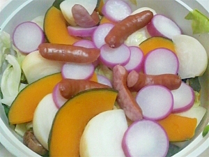 土鍋で 蒸し野菜のチーズフォンデュ えびと水菜のパスタ うちごはんはマーシャもいっしょ
